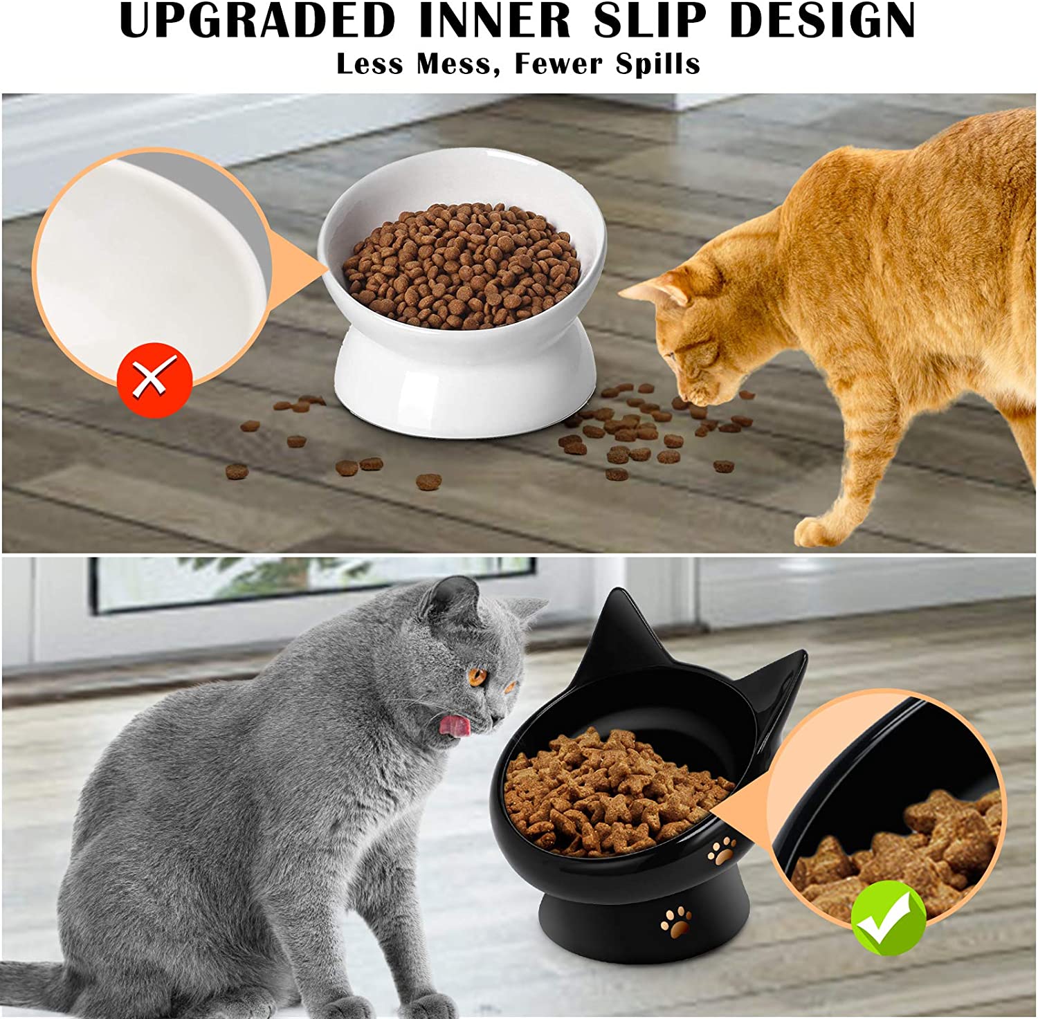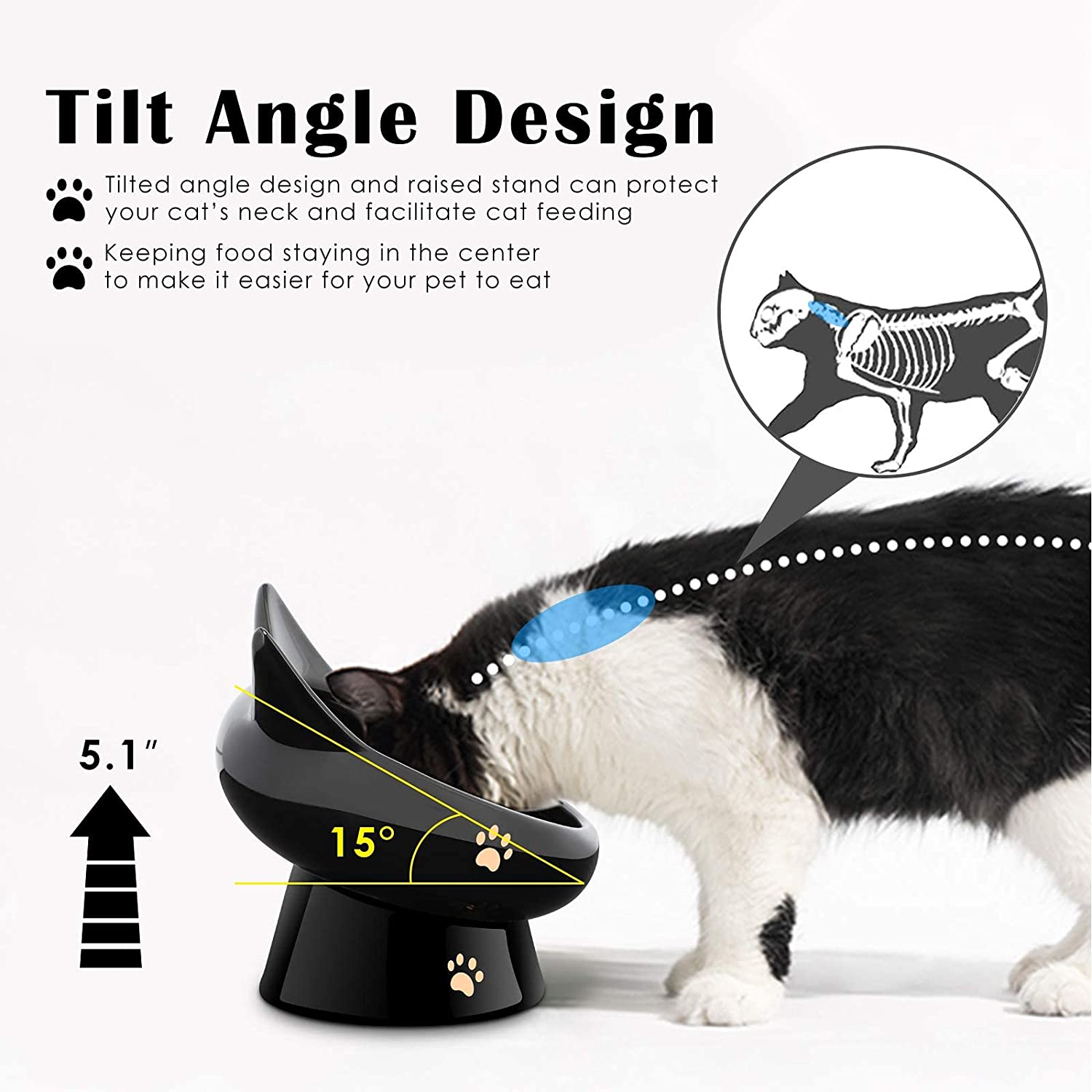 - 【COMFORTABLE HEIGHT & LESS VOMITING】The feline anatomy is such that - when a cat eats from a dish, its mouth becomes lower than its stomach, thus the risk of backflow will be increased. Elevated cat bowl helps cat swallow more easily, alleviates their occasional vomiting, and reduce strain on the body by alleviating stress in the muscles, bones and joints. Advocates an increase in appetite and helps prevents vomiting.
