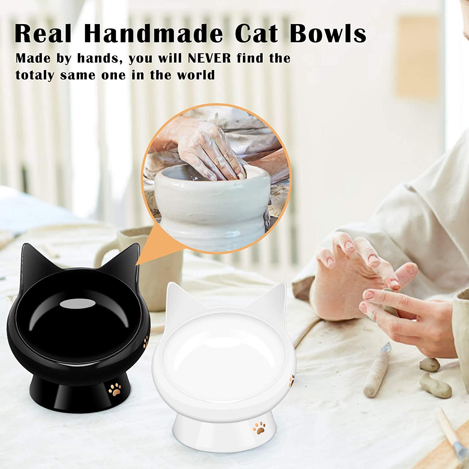 - 【HANDMADE & CAPACITY & CUTE DESIGN】These cat bowls are made by hand, so each one of them is unique. Thus you will never find the totally same one in the world. It is recommended to fill no more than 0.3lbs/130g food and 6.10 ounces water for each Cat bowl. And each size is 5.1 x 4.7 x 4.7 inches. Furthermore, the cute design makes this cat bowl can be also used as a decoration. It is an ideal gift for your pets.