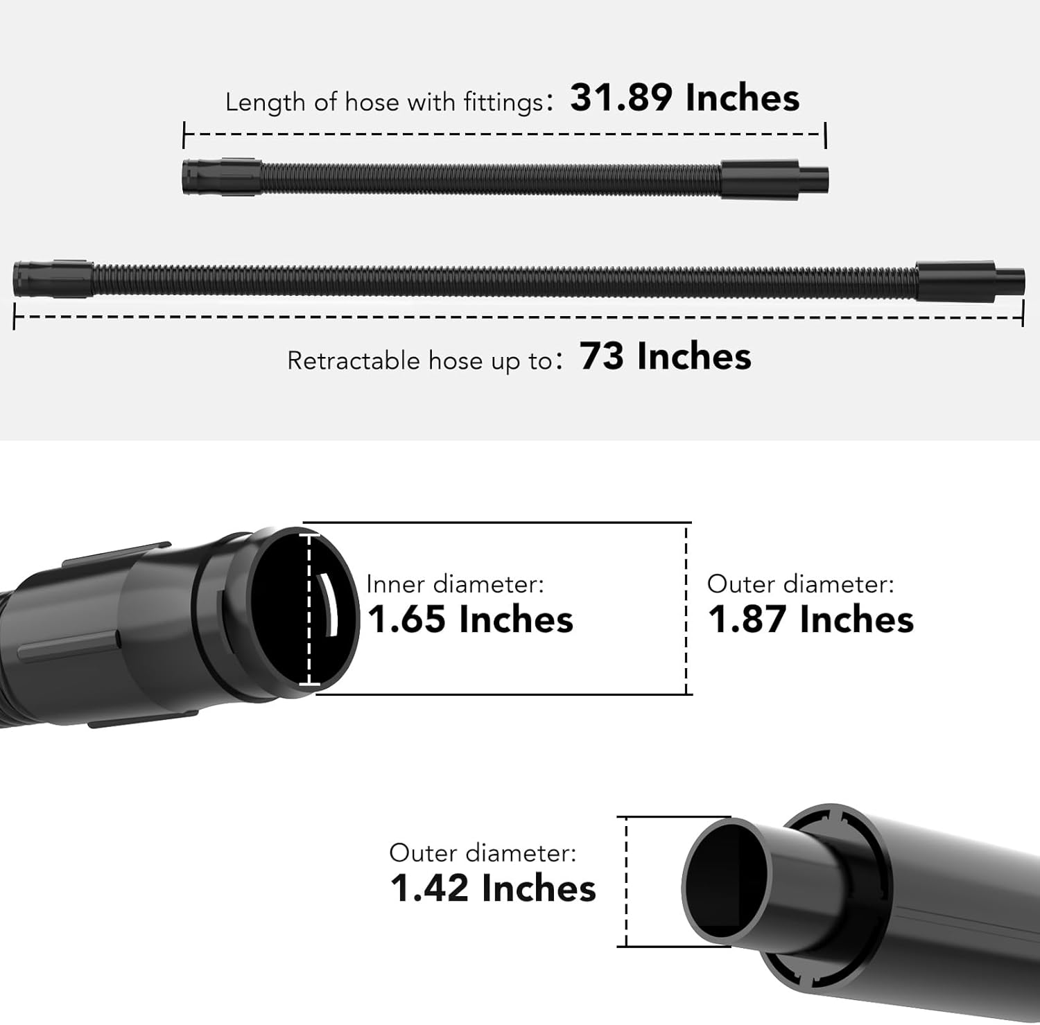 - 1 x Long Spring Hose: Up to 73 inches. 1 x Clip
