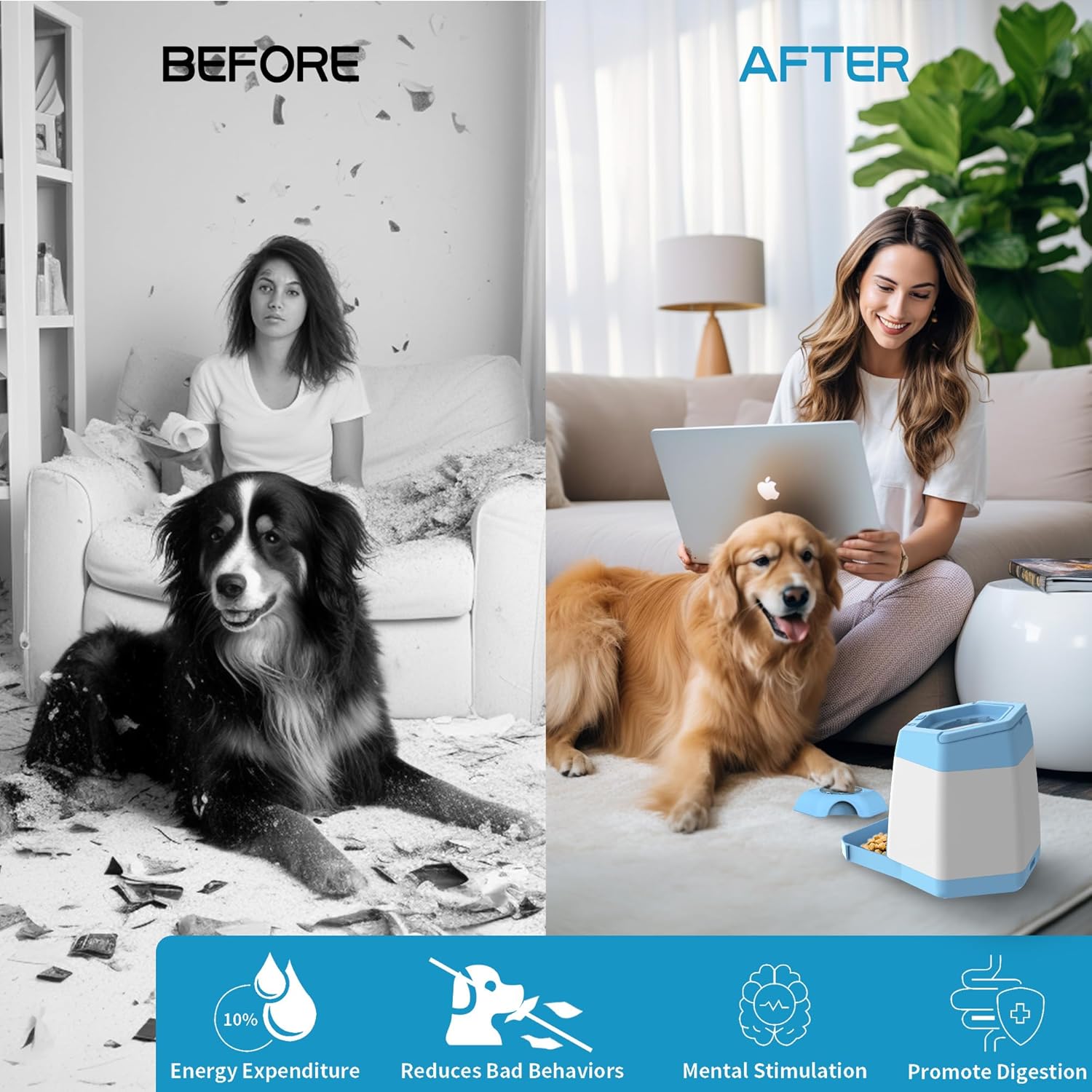 - Customizable Feeding for Every Pet: Our interactive dog feeder offers two adjustable dispensing options, accommodating various dry kibbles or treats for pets of all sizes, from small companions to large, energetic friends. The generous kibble container ensures endless fun for your pet.