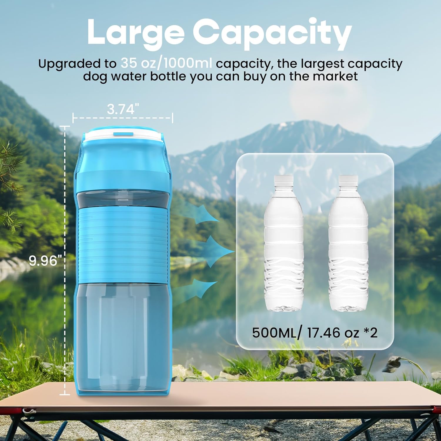 - Safe & Healthy: 35 oz large capacity, non-slip and easy to grip. Completely removable and easy to clean.Made from high-quality, food-grade, BPA-free plastic, this dog bottle water dispenser ensures your pet’s health. It’s a durable addition to your dog accessories, perfect for dog beach essentials and dog camping essentials